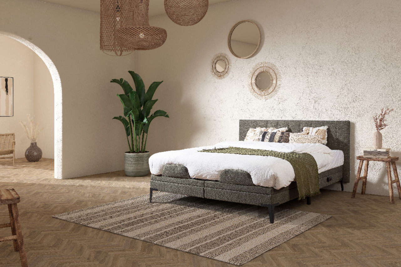 Interieur van pocketveren voor optimaal ligcomfort. Koudschuim afdeklaag. De vaste uitvoering heeft een gestoffeerde box van 21 of 28 cm hoogte zonder pootjes. De electrisch verstelbare box is 2 motorig en heeft een hoogte van 21 of 28 cm zonder pootjes. Wordt geleverd met een anti-slip strook tegen het wegglijden van de matras.